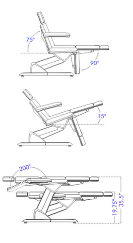 The Glo+ bed has 4 motors that control the height, the backrest, footrest and the inclination of the seat. Headrest comes with breather hole incorporated and is removable. The armrests are reversible as well as removable. Very nice, efficient multi-purpose bed.