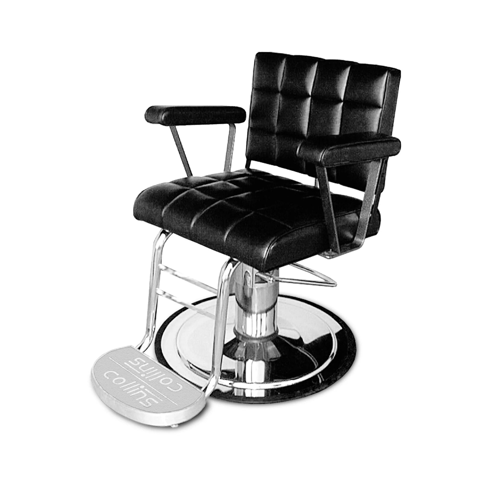 This Hackney Men's Styling Chair is built to last, with custom quilted upholstery powder coated arm details. Its sophisticated style fits into any space, from barber shop to salons.