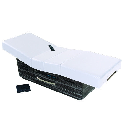 This spa treatment table is the latest innovation from LEC, featuring the industry's lowest "true measure" height range. It offers electric height adjustment, a fully electric salon top, and well-situated tilt-out storage spaces and drawer for extra storage and convenience. Options include the super soft and comfortable Strata GT™ SpaMattress™ that provides the perfect balance between softness and response, a dual-zone embedded table warmer, designer laminates, and luxury upholstery for a modern design finish to name a few.