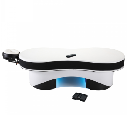 A dual pedestal table like no other, the Infinity GT™ is the industry's first spa treatment table to incorporate molded gel spring-back technology into its salon top mattress, enabling unsurpassed client comfort during extended massage and spa treatments. The Infinity's hourglass shaped 14cm GT Mattress floats on two rounded pedestal columns separated by a glowing LED-lit Iceblock™ shelf. Underneath the hood is a whisper-quiet, four motor system controlled by wireless hand and foot remotes for easy client positioning and swift table height adjustments. The Infinity GTs compact frame doesn't compromise its ergonomic extended 22.7”- 38.5” height range.