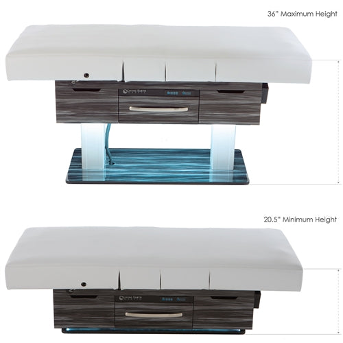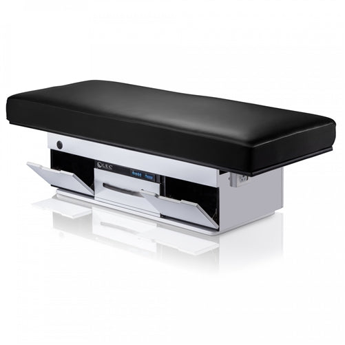 This spa treatment table is the latest innovation from LEC, featuring the industry's lowest "true measure" height range. It offers electric height adjustment, a fully electric salon top, and well-situated tilt-out storage spaces and drawer for extra storage and convenience. Options include the super soft and comfortable Strata GT™ SpaMattress™ that provides the perfect balance between softness and response, a dual-zone embedded table warmer, designer laminates, and luxury upholstery for a modern design finish to name a few.