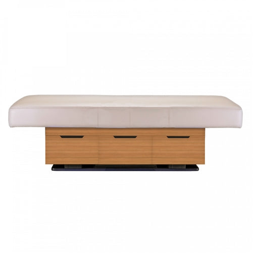 This spa treatment table is the latest innovation from LEC, featuring the industry's lowest "true measure" height range. It offers electric height adjustment, a fully electric salon top, and well-situated tilt-out storage spaces and drawer for extra storage and convenience. Options include the super soft and comfortable Strata GT™ SpaMattress™ that provides the perfect balance between softness and response, a dual-zone embedded table warmer, designer laminates, and luxury upholstery for a modern design finish to name a few.