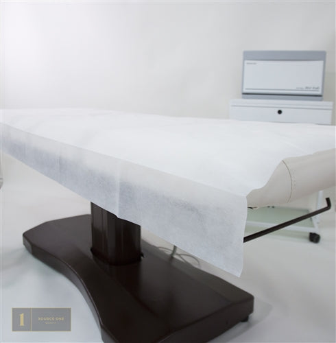 - Soft non-woven disposable fabric, thick and durable material, covers bed for waxing, massage, or drape.
