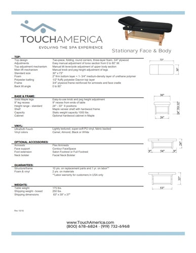 TouchAmerica Stationary Face and Body Treatment Table